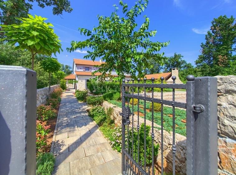 Okućnica od 800m2 obiluje mediteranskim biljem , jasno je definirana i ograđena te jamči maksimalnu privatnost. Ima automatski sustav navodnjavanja, video nadzor, te punionicu za elektro vozila.
