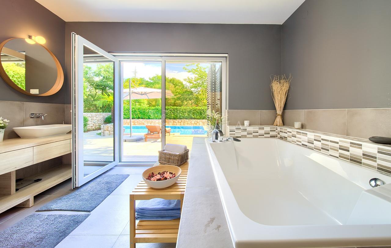 Unutrašnjost interijera obiluje zaista fantastičnom organizacijom prostora. Pri gradnji su korišteni visokokvalitetni materijali, dizalice topline, sve prostorije su klimatizirane, 8 ventilokonvektora, u dnevnom dijelu postoji mogućnost grijanja na kamin. Neke od značajnih dodatnih vrijednosti vile su, solarna energija, solarni paneli za toplu vodu, struja na kući je zakupljena na 22 KW, upravljanje grijanjem/hlađenjem i bazenom putem aplikacije na mobitelu, cisterna za skupljanje vode od 50 m3.