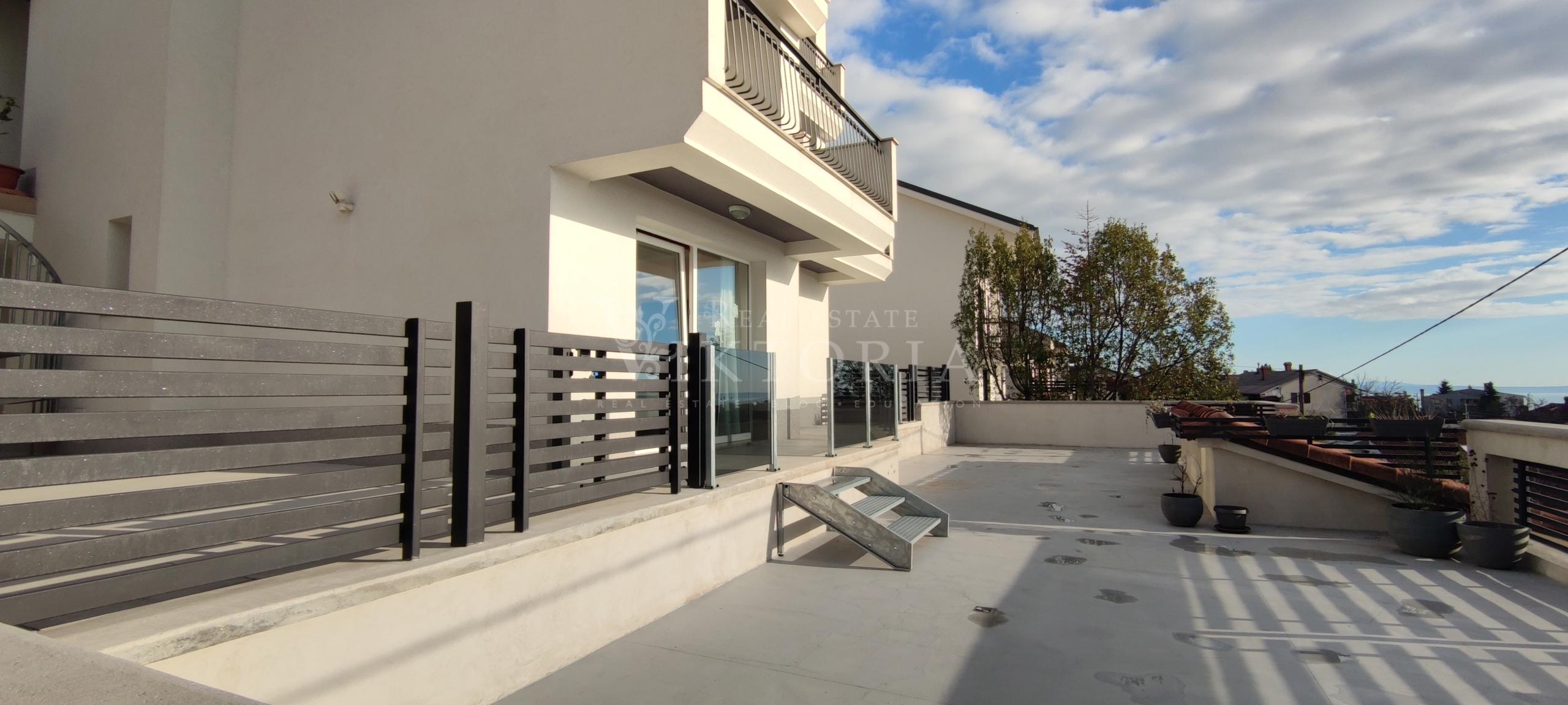 Potpuno uređena i opremljena ,smještena na jednoj od poželjnijih lokacija, jedna je od ljepših samostojećih kuća u svome kvartu sa sigurno neviđenim pogledom na Kvarnerski zaljev iz svakog kuta. Sveukupna stambena površina proteže se na 425m2 podijeljenih na tri etaže, s okućnicom od 912m2.