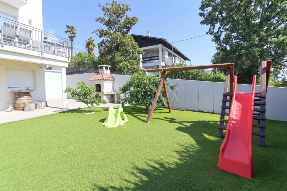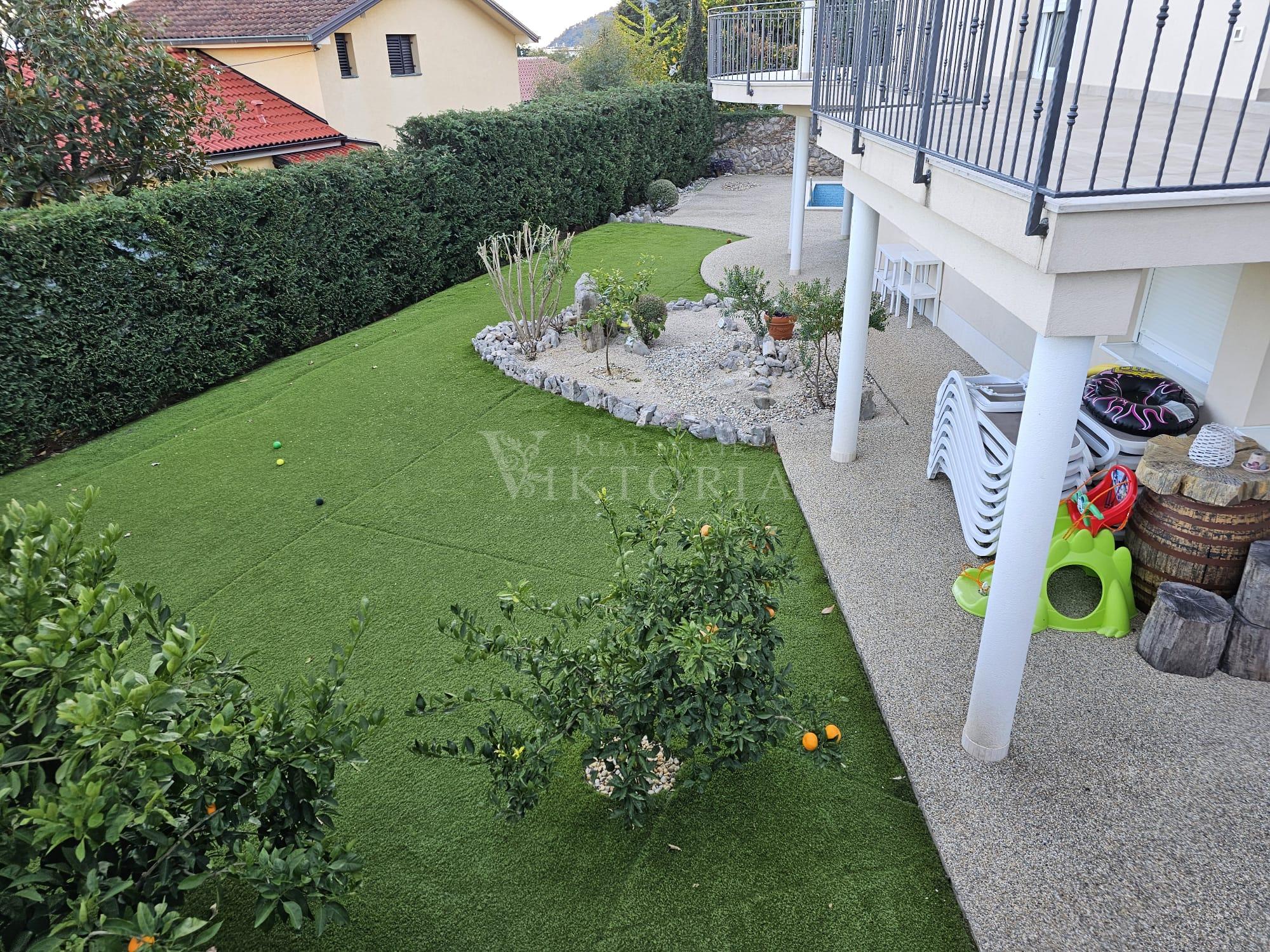 Vila je opremljena svim modernim sustavima za ugodan boravak, uključujući grijanje i hlađenje, video nadzor, alarmni sustav, kao i visoko kvalitetne materijale i završne obrade. Vrhunska aluminijska stolarija i fasadna kamena vuna debljine 10cm. Vanjski prostor također nudi luksuzne sadržaje, među kojima se izdvaja bazen veličine 8 x 4 metra, s pripremom za grijanje vode, savršeno mjesto za uživanje u ljetnim mjesecima. Uređena okućnica s velikim travnjakom i velikom natkrivenom terasom stvara prostor za obiteljska okupljanja ili uživanje u prirodi, dok će vam vanjski kamin omogućiti nezaboravne večeri uz roštilj. Nekretnina nudi čak 7 parkirnih mjesta, uključujući dvije garaže i natkriveni parking.