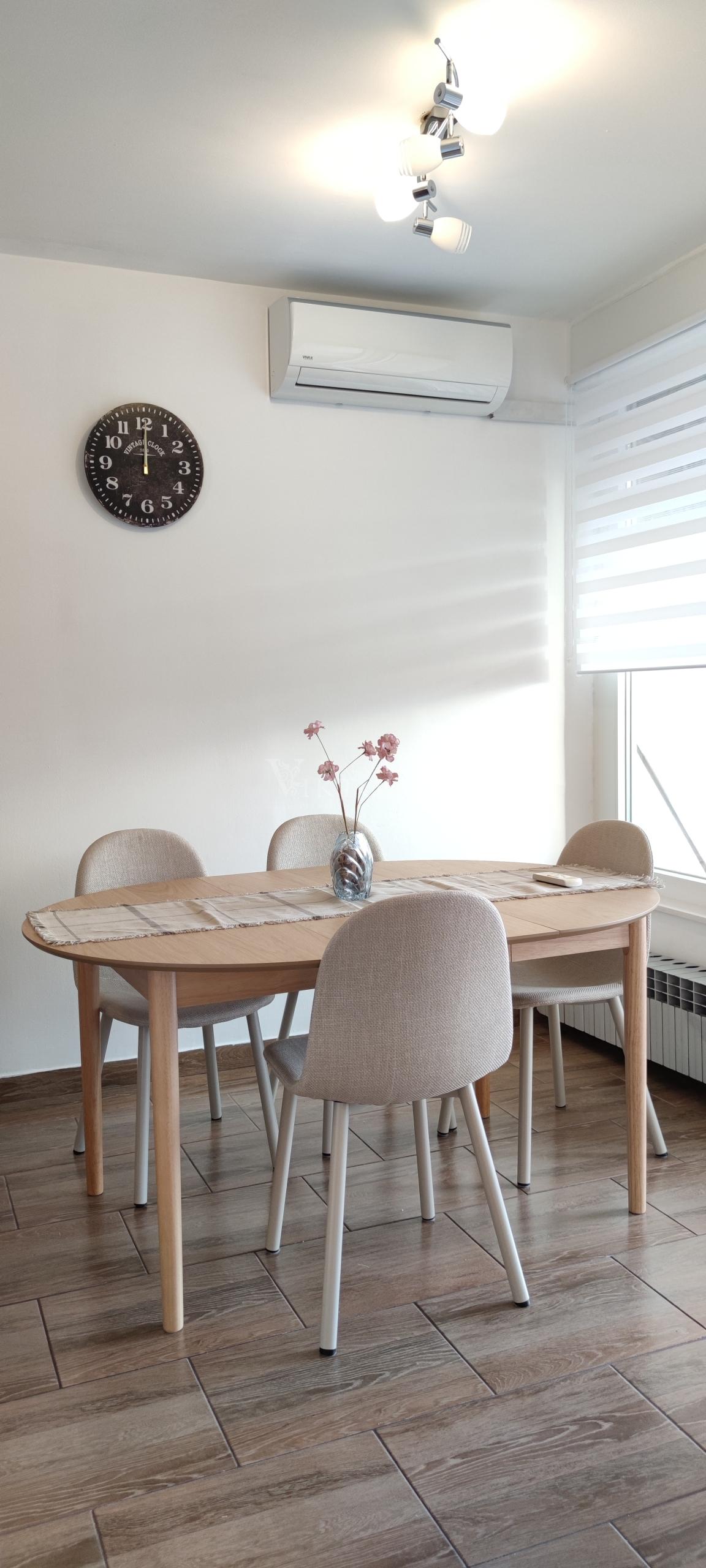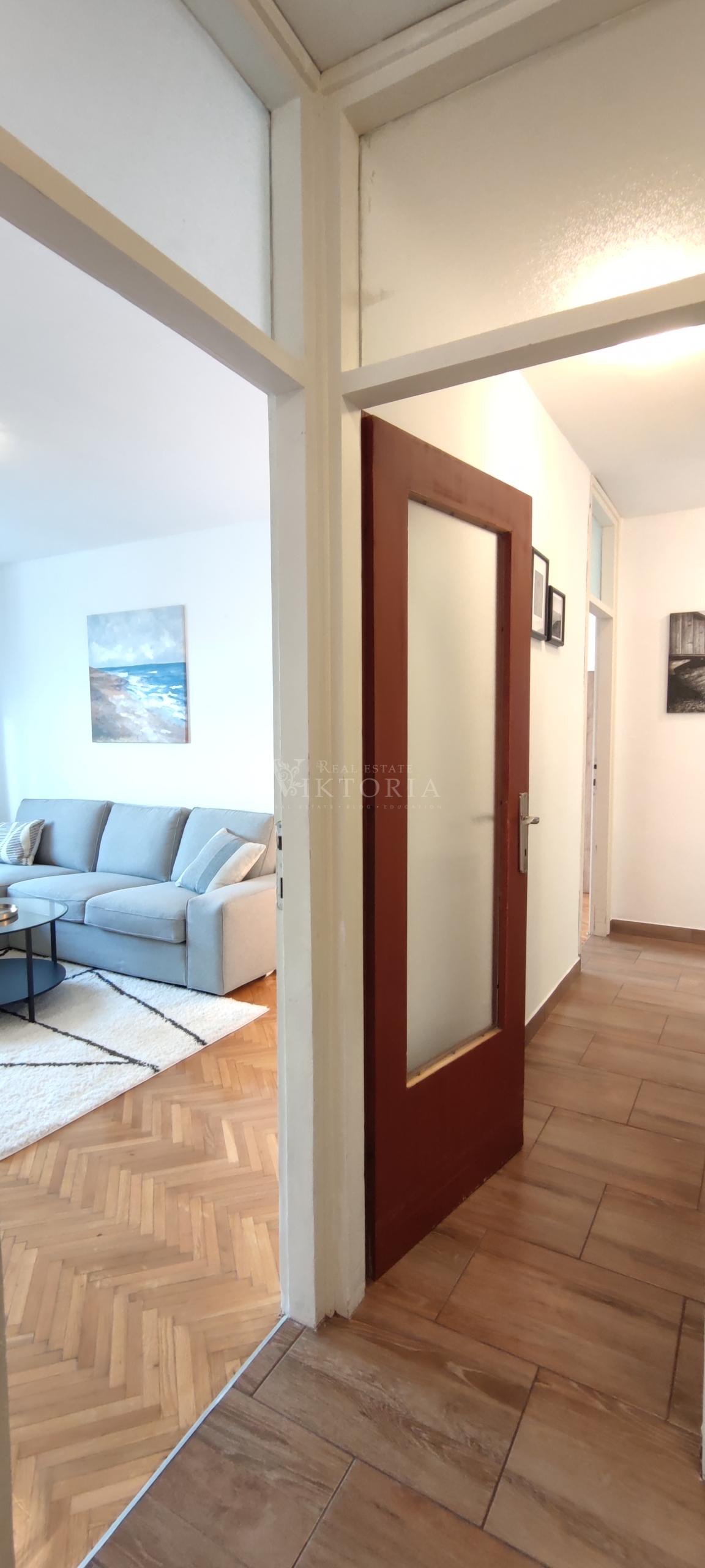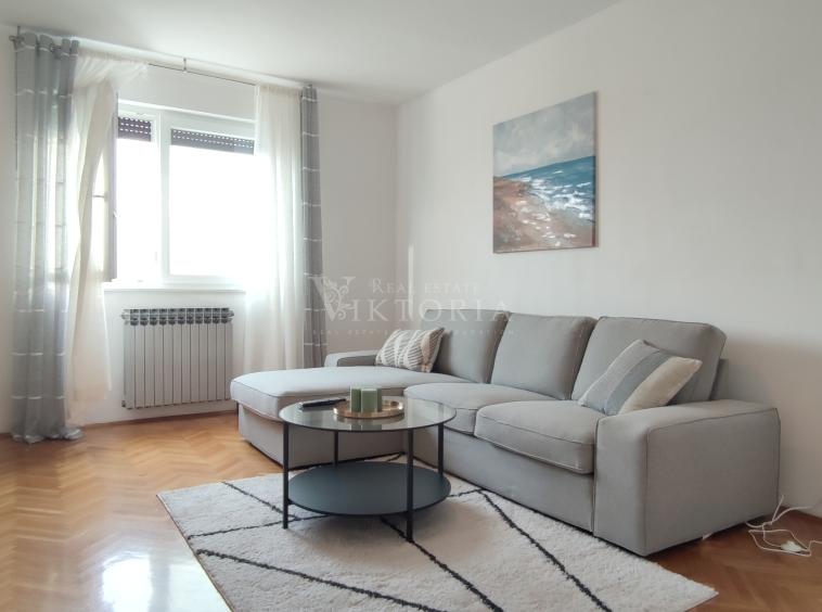 Dnevni boravak je prostran, s izlazom na balkon koji je orijentiran prema jugu, pružajući obilje prirodnog svjetla i topline tijekom cijelog dana. Stan je novouređen, s modernim interijerom, spreman za useljenje, te se nalazi u zgradi s puno dostupnih parkirnih mjesta.