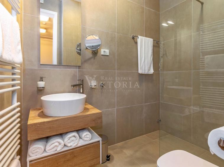 Luksuzne Vile kategorizirane su s 5 zvjezdica i mogu se pohvaliti zavidnom turističkom popunjenošću, nalaze se na Veprincu -drevnom gradiću iznad opatijske rivijere. Veprinac krasi netaknuta priroda i ugodna klima. Svaka vila, osim maksimalnog komfora nudi i mogućnost korištenja dodatnih sadržaja za rekreaciju i opuštanje. Budućim vlasnicima su na raspolaganju teretana te sauna u kojoj se mogu dodatno opustiti. Uz brigu o svome tijelu, svakodnevnim obvezama ćete se vratiti još lakše. Vile imaju kapacitet smještaja za 8-10 osoba u četverokrevetne ili peterokrevetne spavaće sobe. Sobe su kompletno uređene i opremljene LCD-TV-om i klima uređajem. Dnevni boravak i blagovaonica su moderno opremljeni, podno grijanje u svim objektima. Vile se nalaze na velikom posjedu, spuštaju se kaskadno jedna za drugom te pružaju izniman pogled uz komfor i privatnost. Ispred svake vile se nalazi bazen s ležaljkama, dječje igralište, roštilj te prostor za parking. Iz vila možete gledati more kao da vam je na dlanu kao i iz vanjskih bazena veličine i do 75m2 . Na poseban način unutrašnjost Vila spojena s pitoresknom okolinom. Funkcionalnost i dizajn u savršenom skladu. U kvalitetu gradnje, ekskluzivnog interijera i eksterijera uvjerite se sami!