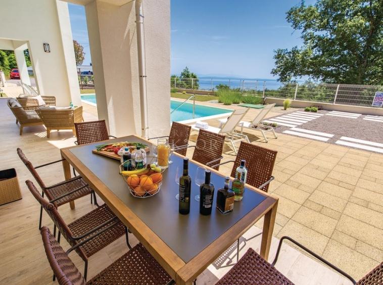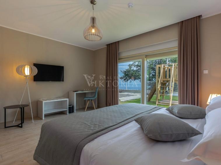 Luksuzne Vile kategorizirane su s 5 zvjezdica i mogu se pohvaliti zavidnom turističkom popunjenošću, nalaze se na Veprincu -drevnom gradiću iznad opatijske rivijere. Veprinac krasi netaknuta priroda i ugodna klima. Svaka vila, osim maksimalnog komfora nudi i mogućnost korištenja dodatnih sadržaja za rekreaciju i opuštanje. Budućim vlasnicima su na raspolaganju teretana te sauna u kojoj se mogu dodatno opustiti. Uz brigu o svome tijelu, svakodnevnim obvezama ćete se vratiti još lakše. Vile imaju kapacitet smještaja za 8-10 osoba u četverokrevetne ili peterokrevetne spavaće sobe. Sobe su kompletno uređene i opremljene LCD-TV-om i klima uređajem. Dnevni boravak i blagovaonica su moderno opremljeni, podno grijanje u svim objektima. Vile se nalaze na velikom posjedu, spuštaju se kaskadno jedna za drugom te pružaju izniman pogled uz komfor i privatnost. Ispred svake vile se nalazi bazen s ležaljkama, dječje igralište, roštilj te prostor za parking. Iz vila možete gledati more kao da vam je na dlanu kao i iz vanjskih bazena veličine i do 75m2 . Na poseban način unutrašnjost Vila spojena s pitoresknom okolinom. Funkcionalnost i dizajn u savršenom skladu. U kvalitetu gradnje, ekskluzivnog interijera i eksterijera uvjerite se sami!